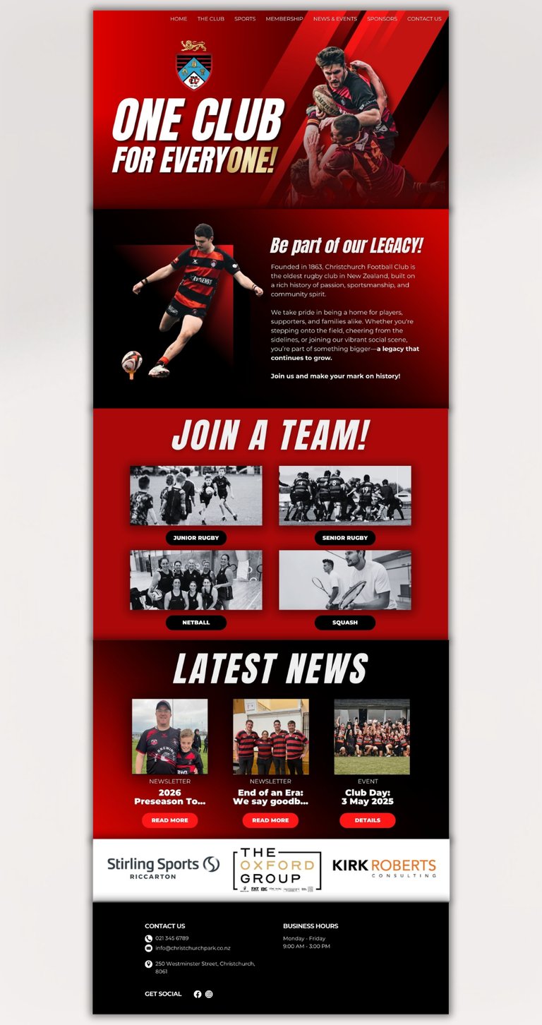 The project involved delivering a comprehensive brand transformation that repositioned the club both on and off the field. I developed a complete brand strategy and marketing plan, establishing a clear brand voice and detailed branding guidelines to ensure consistency across all touchpoints. The refreshed identity was rolled out through a redesigned website, revitalised social media presence, updated event branding, and a suite of collateral including flyers, brochures, and business stationery. The result is a cohesive, modern brand that strengthens community engagement, attracts new players and supporters, and reflects the pride and legacy of the club.