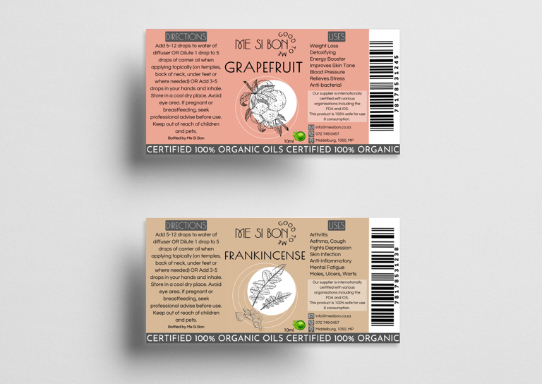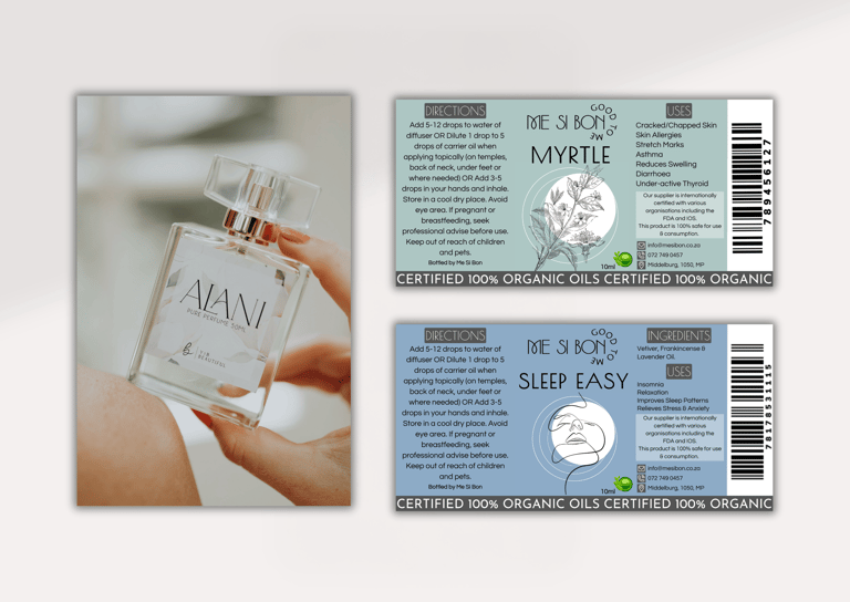 This project focused on creating distinctive and cohesive stickers for the packaging of two brands under the same owner: Me Si Bon Essential Oils and YnotB Luxury Beauty Products. The stickers needed to vary in size and shape for different ranges and scents while maintaining a unified visual identity for each brand.